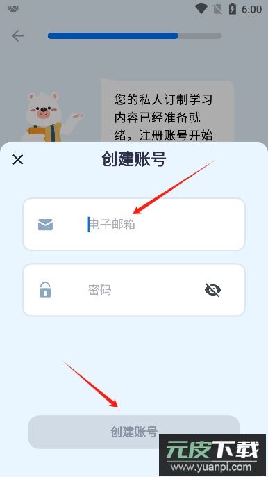 4、输入个人邮箱地址并设置密码,即可快速完成注册流程