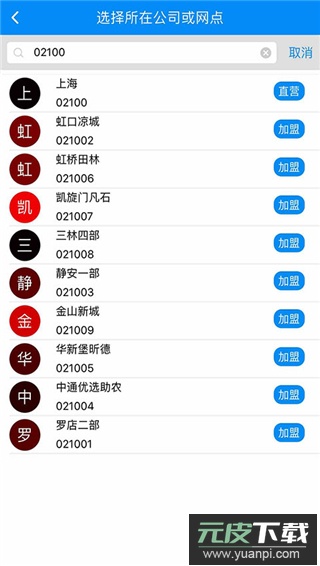 4、选择您所属的公司与具体网点,点击加盟选项;