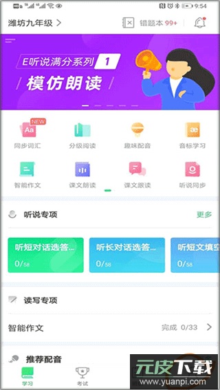 分段式提分路径:配合学校教学的单元同步、阶段复习及假期巩固节奏,通过智能系统支持学生自主学习、作业练习与学情分析、错题订正强化三个步骤,提升听说能力与考试成绩。
