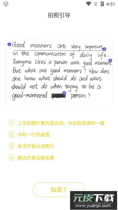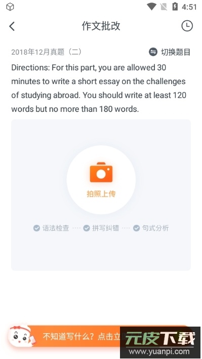 3、支持手写作文拍照上传,系统会自动识别文字并进行评阅。