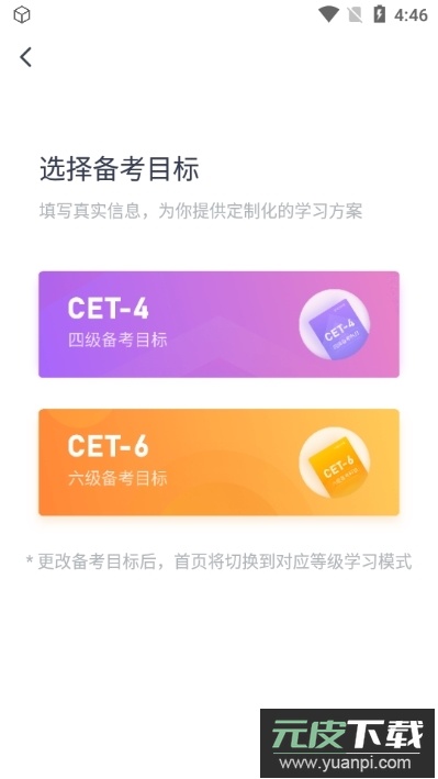 3、将备考目标调整为六级,系统会自动切换至对应的学习内容;