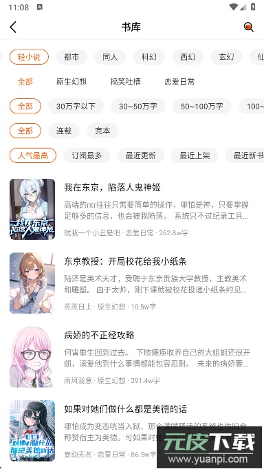 2、点击首页的轻小说版块进入,你可以根据喜好自由选择不同的轻小说分类;