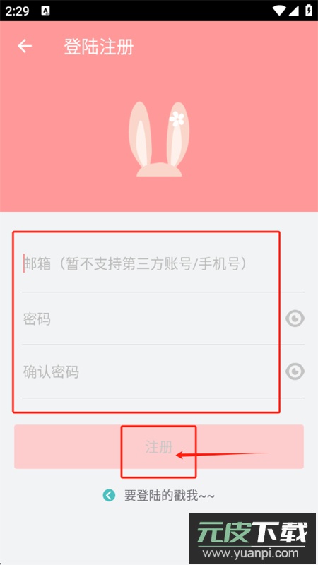 5、最后填写邮箱并设置密码,点击注册按钮完成操作。