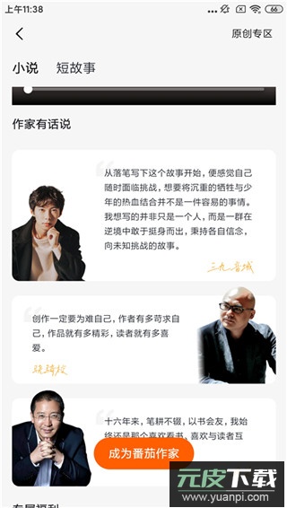 1、进入个人中心页面,点击“成为作家”入口开始申请;
