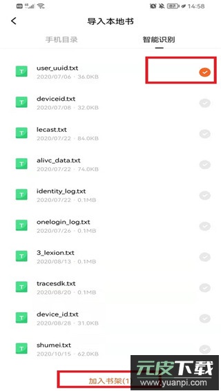 5、找到目标文件后点击选中,确认添加至书架即可完成导入。