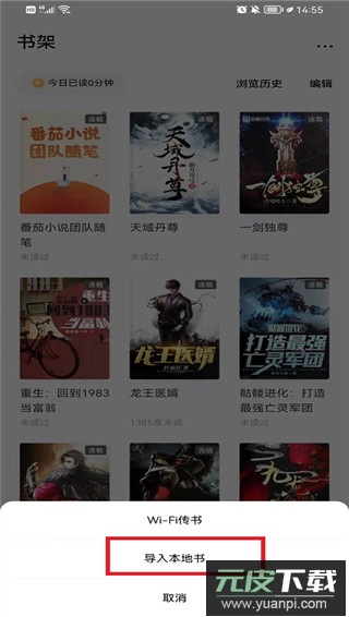 3、屏幕下方会弹出导入方式选项,点击“导入本地书”进入文件选择步骤;