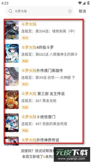2、输入关键词后,下拉菜单栏会显示相关漫画;