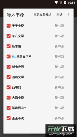 4、即可看到所有可用书源,用户可以自行选择并导入;