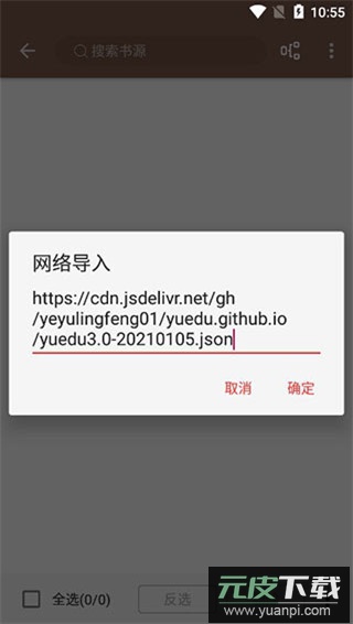 3、将书源链接粘贴到软件界面中,点击确定;