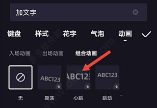 5、在组合动画下,选择使用【心跳】动画效果即可