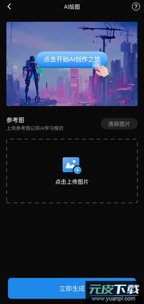 接着上传需要转换的图片,按下“立即生成”按钮;
