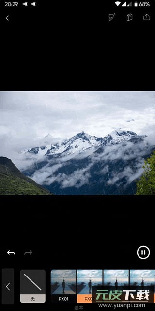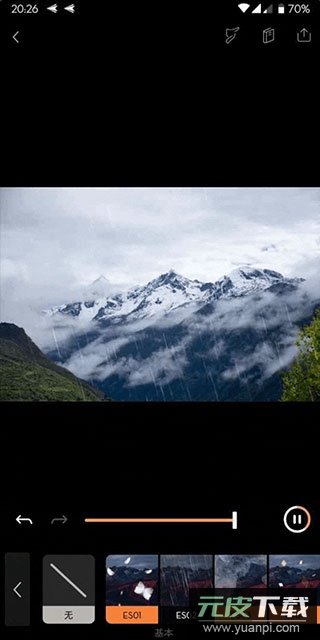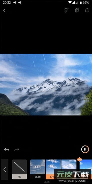 为了增强「山间细雨、润物无声」的意境,可以在「叠加效果」中选择「细雨」特效,并适当调整强度,避免效果过于突兀。