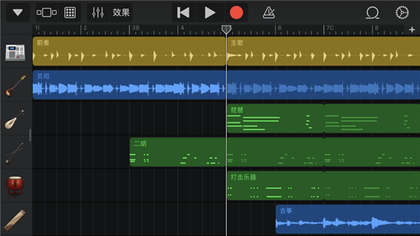 5. 通过触控乐器、音频录音和乐段进行创作,支持最高32条音轨的混音,带来专业级的混音效果与注释板功能,提升制作水准。