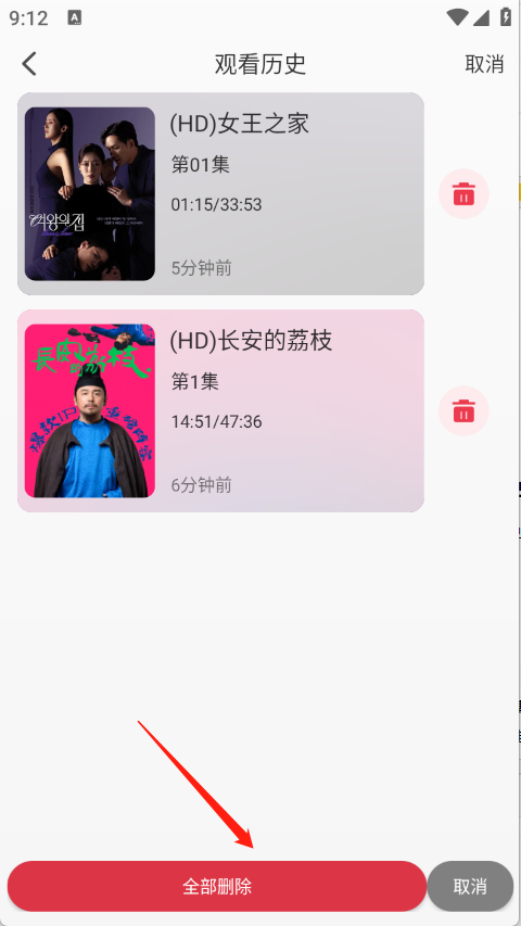 3、选择要删除的影视记录确认即可;