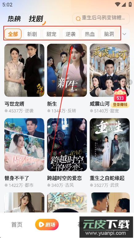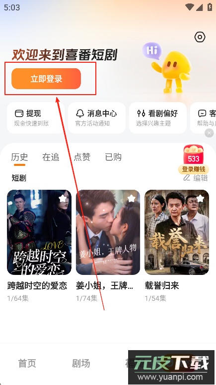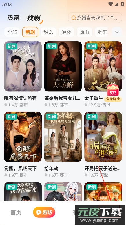 1、成功登录后,进入首页“剧场”板块,可以看到众多推荐的短剧内容。
