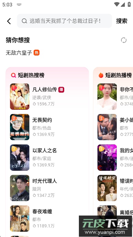 喜番免费短剧是专为短剧爱好者打造的宝藏平台,这里汇集了海量丰富的短剧资源,涵盖古风、都市、甜宠、逆袭等多种热门题材,能够充分满足用户的各类观剧需求。所有内容均可免费观看,无需开通会员,即可享受高清流畅的播放体验,还可以使用弹幕功能与其他观众实时交流互动,分享彼此的追剧感受,欢迎感兴趣的朋友们立即下载体验。
