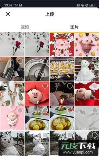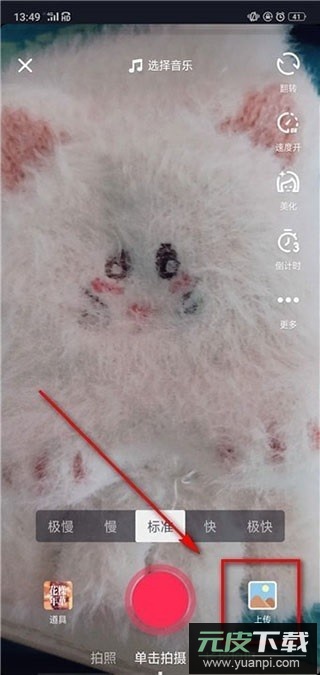 2、进入拍摄视频界面后点击右下角的上传按钮;