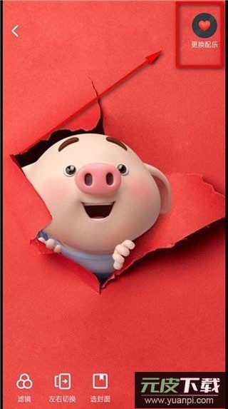 6、页面右上方会出现更换配乐的图标,点击该图标;