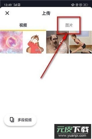 2、进入拍摄视频界面后,点击右下角的上传按钮;