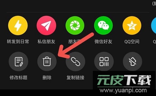 进入更多选项页面后,底部的功能栏里暂时看不到删除选项,需要把所有图标向左滑动,倒数第二个按钮就是删除,点击删除前可以再次确认是否真的要移除这个作品。