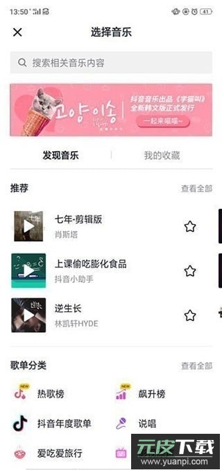8、曲库中有更多不同风格的音乐可以选择,也可以直接搜索自己想要的曲目;