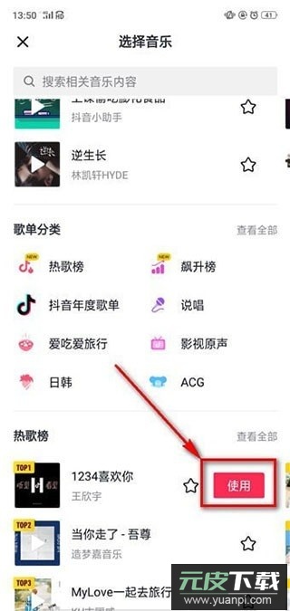 9、选中想要的音乐后点击后方的使用按钮,给抖音图片视频加音乐的操作就完成了,确认内容无误就可以直接发布。