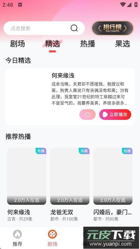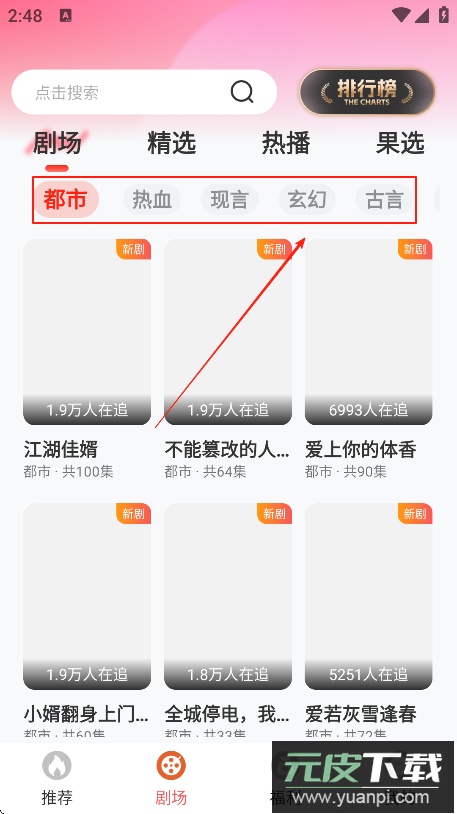 1、启动软件后进入剧场主页,可以看到众多短剧推荐;