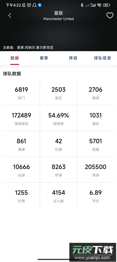 4、进入球队页面查看详细数据;