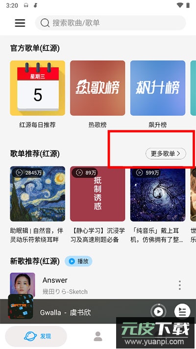 3、更多歌单内容:点击“更多”按钮可浏览系统推送的其他推荐列表。