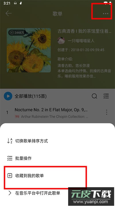 进入歌单详情页,点击更多功能按钮,选择“收藏到我的歌单”即可完成收藏。