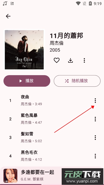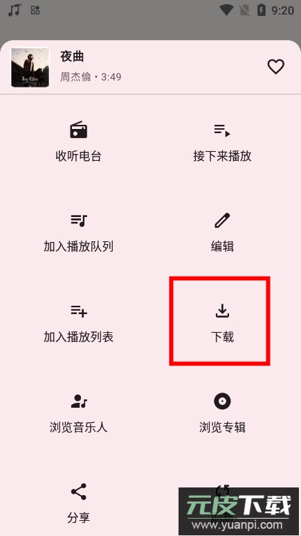 在弹出的菜单中选取下载功能,便可将音乐保存至设备本地。