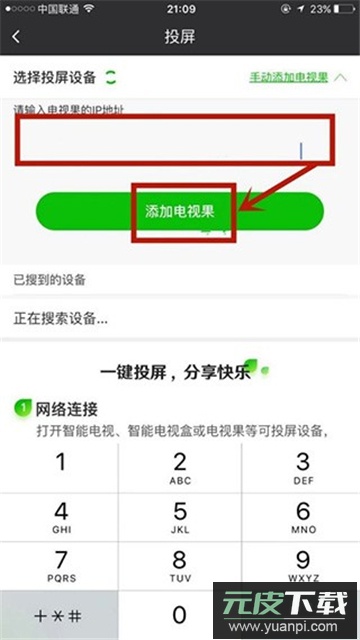 5. 找到需要连接的电视设备后,输入对应的电视果IP地址,点击“添加电视果”即可完成投屏。