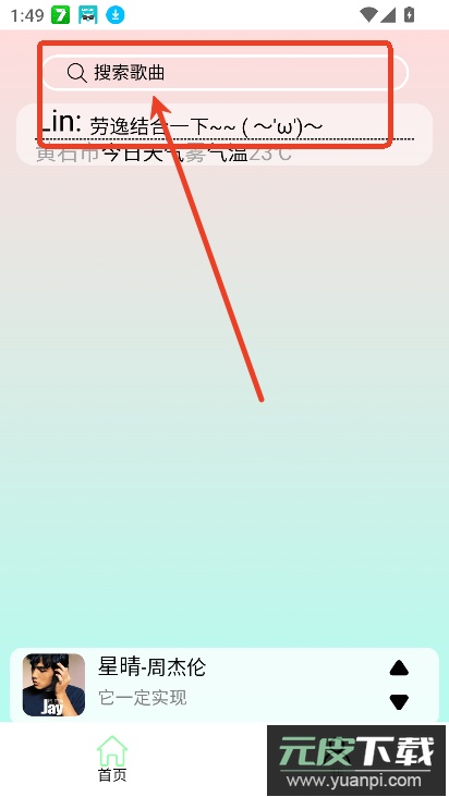 1、打开应用首页,在搜索框直接输入歌手名、歌曲名等关键词进行查找。