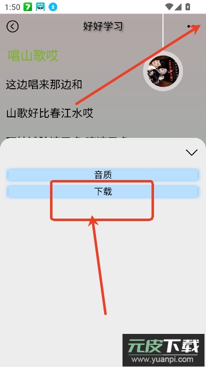 4、也可以点击歌曲右侧的三点菜单,选择下载选项,将音乐保存到本地设备。