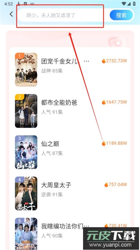 2、点击页面上方的搜索框,输入关键词就能快速定位想看的短剧作品。