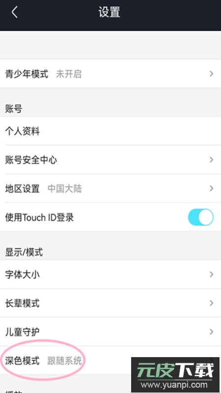 2、进入设置页面后,点击深色模式选项;