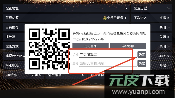 3、用户可根据直播或点播需求,自定义输入地址接口,完成后点击确定。