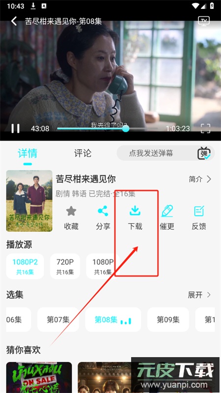 2、选择想看的影视进入播放页面,点击下方下载按钮;