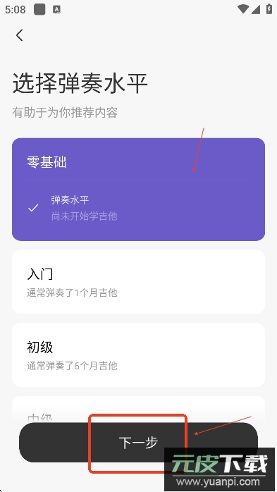 如果你是刚开始接触吉他,可以勾选零基础选项,然后点击下一步继续。