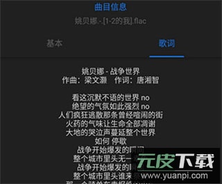 在播放界面中,通过文件信息对话框可以将歌词以文本形式展示出来。