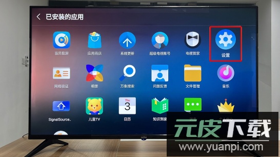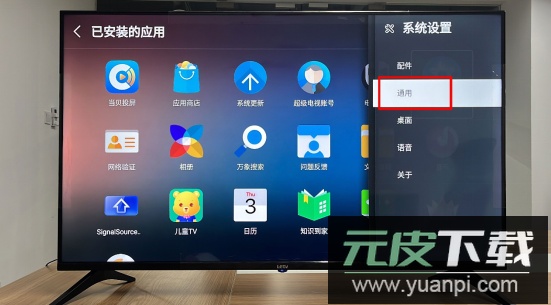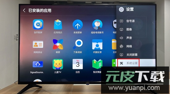 2. 使用遥控器进入设置,选择应用标签页中的已安装应用,打开设置并进入系统设置;