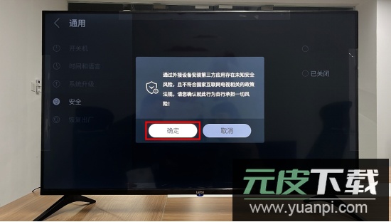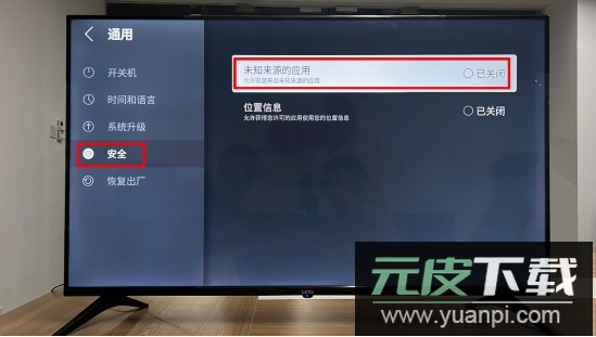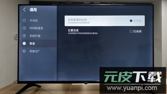 3. 在通用设置中找到安全选项,开启未知来源应用;