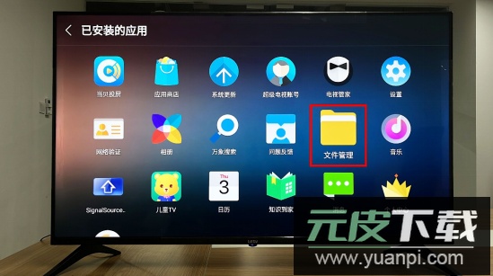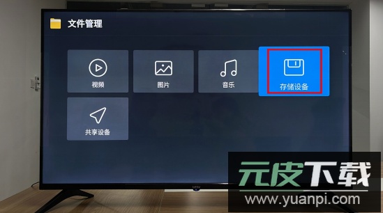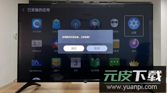 4. 将U盘插入乐视电视USB接口,电视会识别外接设备,选择确定进入,或在已安装应用中打开文件管理;