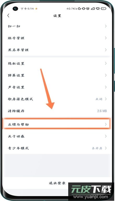 3、在设置列表里找到并单击反馈和帮助选项,进入对应的页面;