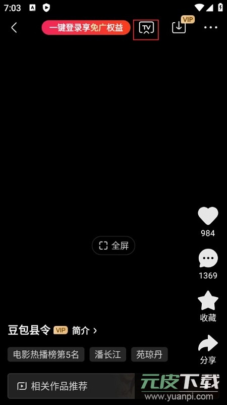 6.视频正常开始播放后,手机播放界面上会出现投屏按钮,直接点击该按钮;