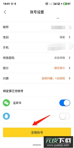 3、页面中找到“注销账号”入口,点击进入并按指引完成操作。