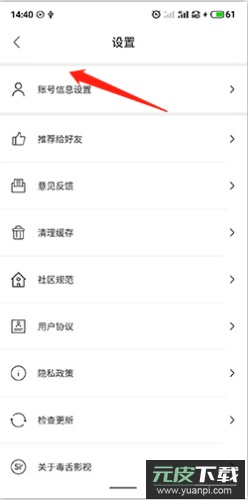 2、在设置菜单中,选择“账号信息设置”选项;