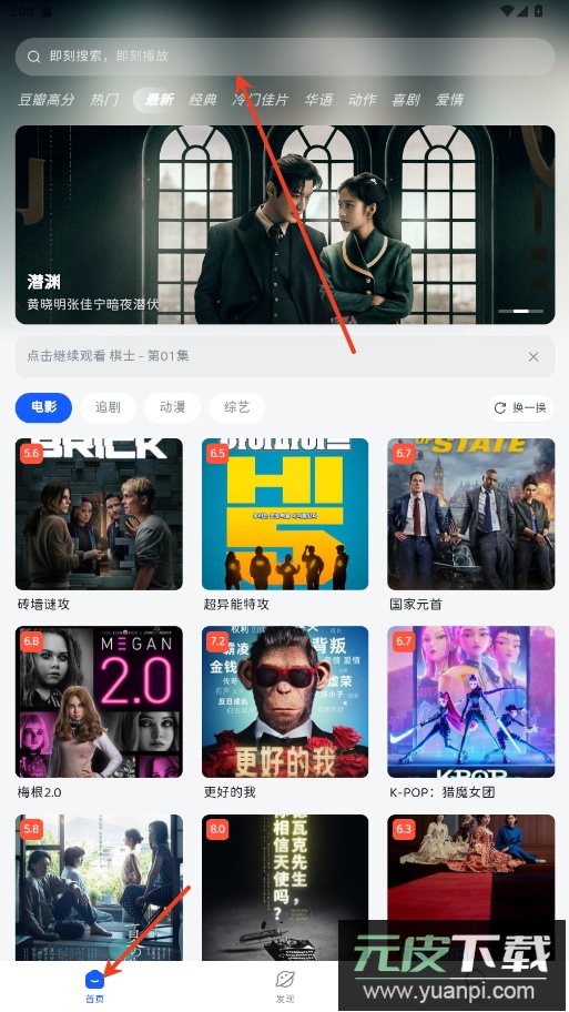 1.在首页上方点击搜索框。
