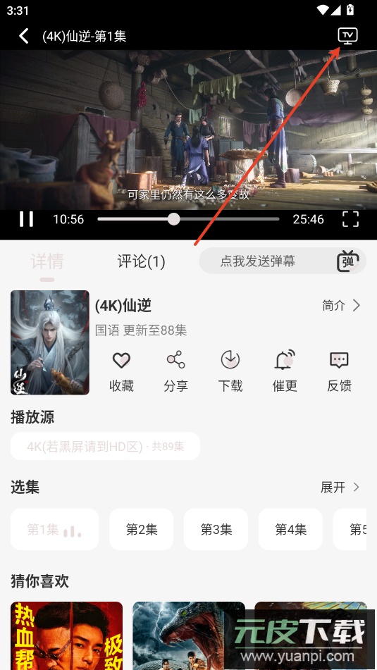 2.点击右上角TV投屏。