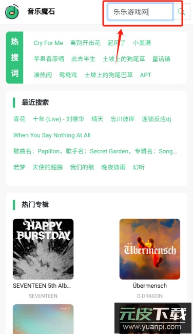3、通过顶部搜索框输入关键词,查找目标歌曲。